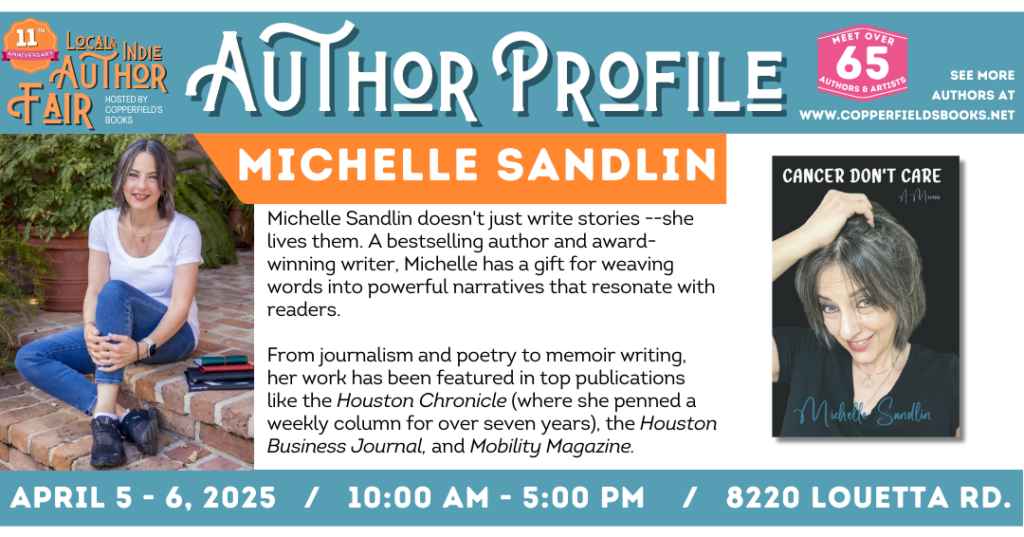 I was thrilled to participate in the 11th Annual Spring Author’s Fair on April 5th & 6th from 10 AM – 5 PM at Copperfield’s Books (8220 Louetta Rd, Spring, TX 77379) for an incredible 2-day event featuring over 65 authors and artists!